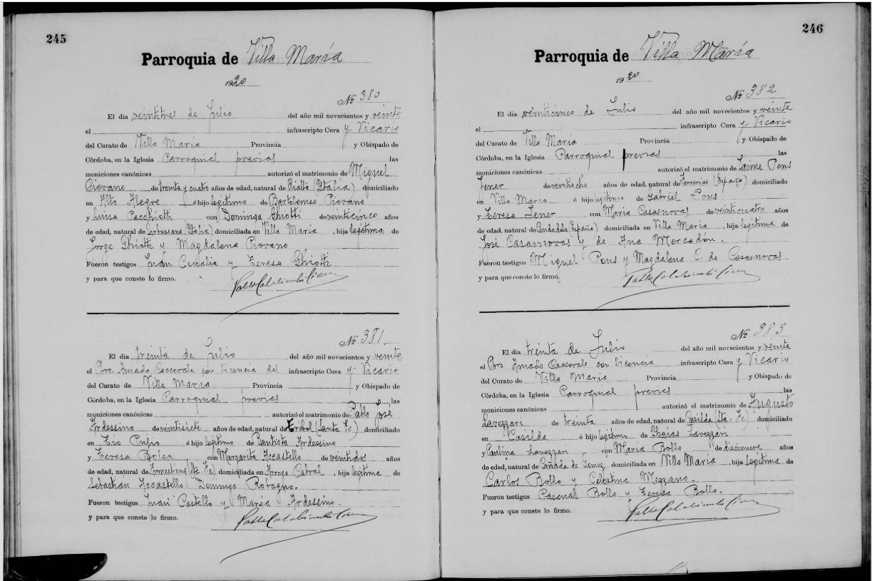 En la fotografia, podem veure que es tracta de la partida de casament de Maria Casasnovas (24 anys) amb Jaume Pons Jener (28 anys), naturals de Ferreries i Ciutadella, el 25/07/1920.